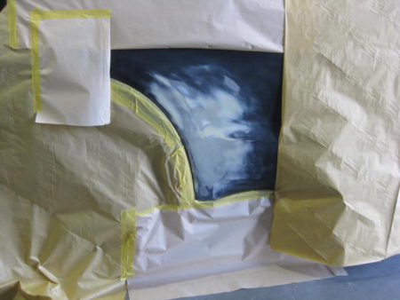 塗装の際にはどこからか必ず漏れて車内に色がついてしまうので簡単そうに見えてマスキングは結構シビアな作業です。