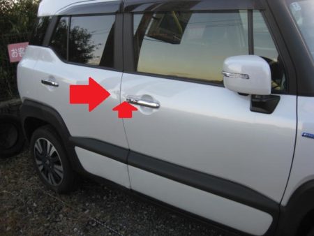 ▼ 右側のフロントドア及びリアドアに傷が見られました。