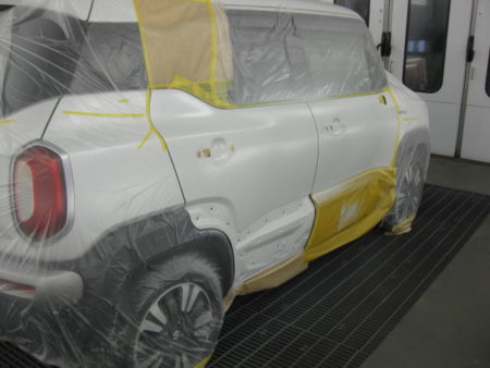 ▼ お車を塗装専用ブースに移動して塗装を行います。