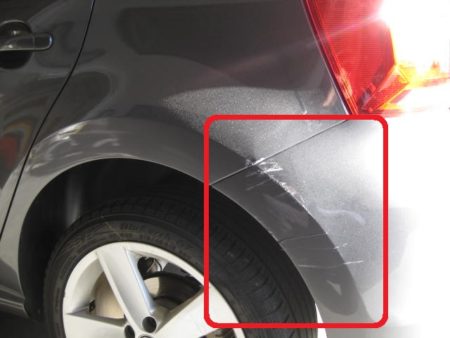 ▼フェンダーからバンパーにかけてキズやへこみが出来ています。